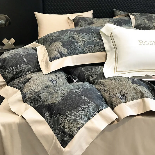 Floraison Élégante Egyptian cotton bedding set, 500 thread count | Green Floral