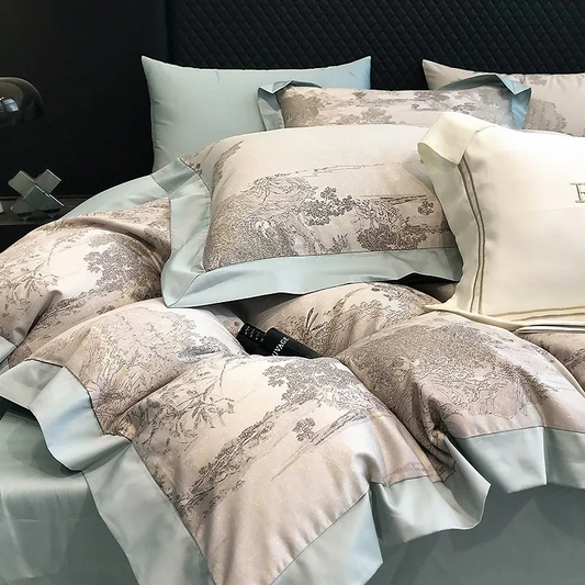 Parrot Poetry Bedding Set in Egyptian Cotton 500 Thread Count | Blue-Green