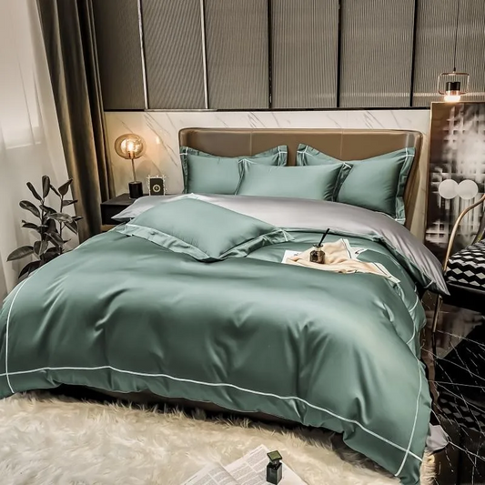 Duvet Cover Set in Egyptian Cotton 600 Thread Count | Olive Green