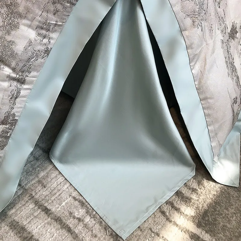 Experience the ultimate in sleeping comfort with Morgenhain, made from 1000-thread-count Egyptian cotton for timeless lightness. The floral pattern in delicate gray with blue edging and a satin finish exudes calm and exclusivity. The duvet cover, flat sheet, and pillowcases combine elegance, comfort, and security—true elegance you can feel.