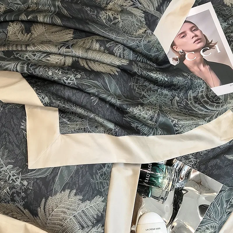 Experience the ultimate in sleeping comfort with Morgenhain, made from Egyptian cotton (1000 thread count) for timeless lightness. The floral pattern in delicate gray with blue edging and a satin finish exudes calm and exclusivity. The duvet cover, flat sheet, and pillowcases combine elegance, comfort, and security—true elegance you can feel.
